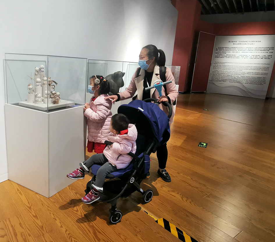参观者中还有四五岁的小朋友,边走边指着展柜中的乐天使fun官网作品问妈妈:“这是什么?那是什么?”妈妈非常认真、耐心的给孩子讲解标签上的作品介绍,告诉孩子每件作品表达的内容和思想,还依次给小朋友拍照留念。