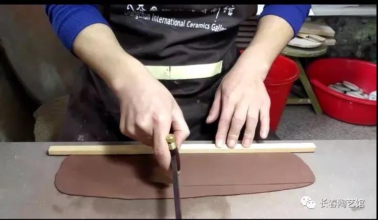 刮光 泥条拍好之后用泥条尺刮光