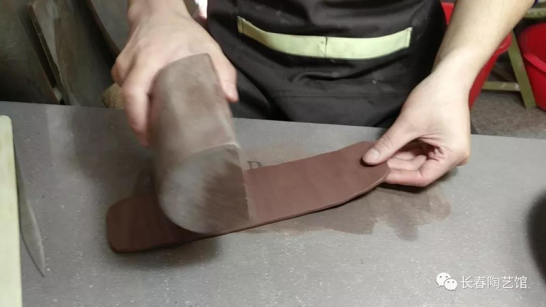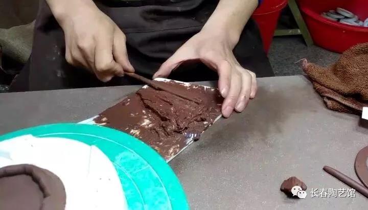 做壶的第一步,是拍泥条,万事开始先磨心,这拍泥条就是,王老师讲要动作轻柔均匀,拍出厚薄均匀又圆正的泥片