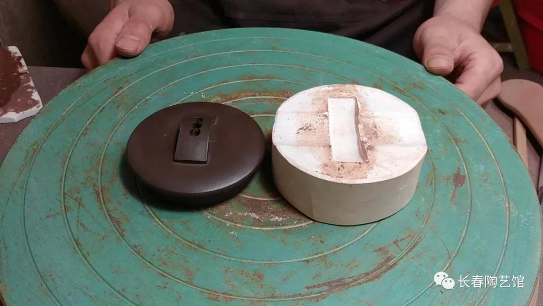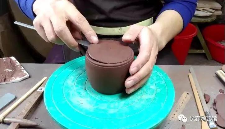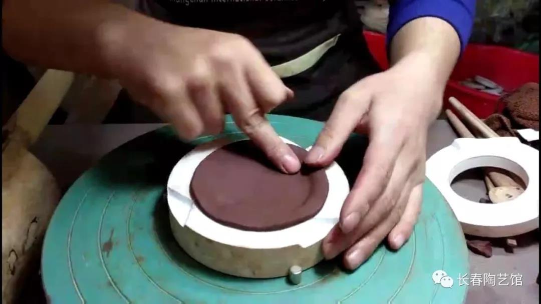 做壶盖    用搪盖石将多余的泥搪掉